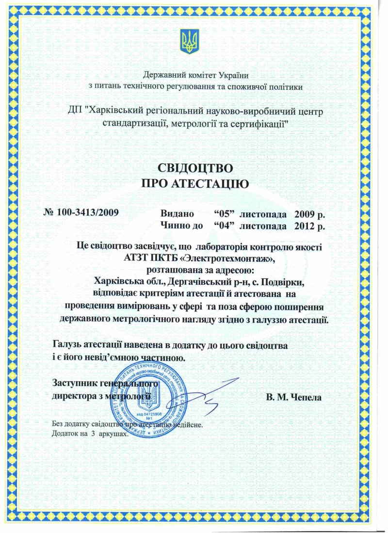 All the equipment is certified in the certification system of UkrSEPRO and GOST R of Gosstandart of Russia, tested before shipping to the Customer in accordance with the acceptance and approval test program.