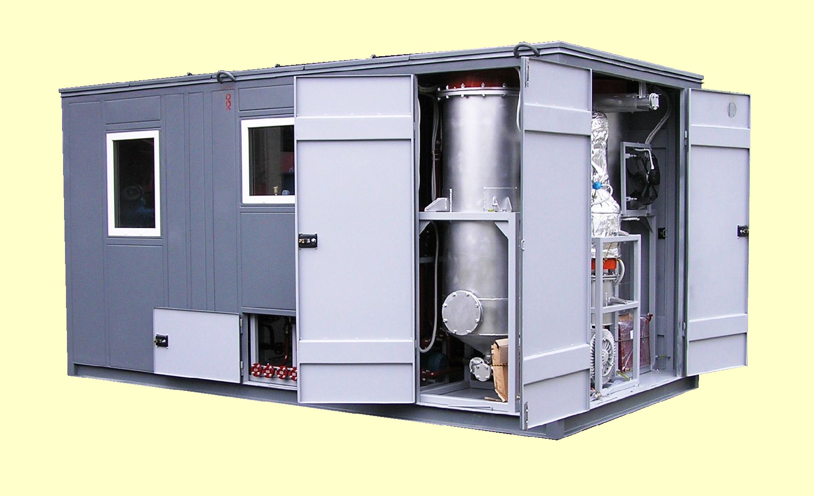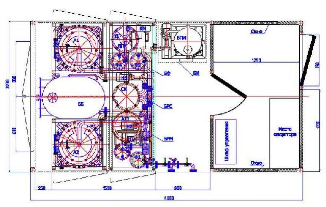 Установка выполнена в виде металлического утеплённого контейнера, внутри которого смонтировано оборудование. Предусмотрено рабочее место оператора, которое утеплено и обеспечен подогрев в зимнее время года.