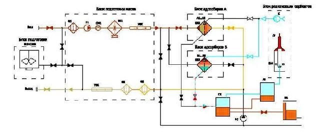 Схема комбинированная принципиальная приведена на рис. 2 (в схеме условно показано по одному адсорберу в ветви).