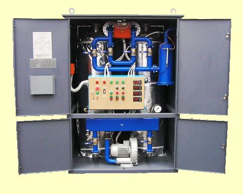 Предназначена для осушки и очистки от механических примесей атмосферного воздуха, используемого для продувки баков силовых трансформаторов и других электрических аппаратов в процессе их монтажа, ремонта и эксплуатации с целью предохранения электрической изоляции от увлажнения во время разгерметизации активной части. При работе в зимнее время предусмотрен подогрев сухого воздуха до температуры 100°С.