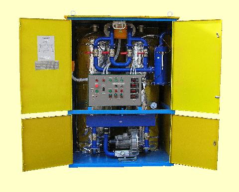 Предназначена для осушки и очистки от механических примесей атмосферного воздуха, используемого для продувки баков силовых трансформаторов и других электрических аппаратов в процессе их монтажа, ремонта и эксплуатации с целью предохранения электрической изоляции от увлажнения во время разгерметизации активной части. При работе в зимнее время предусмотрен подогрев сухого воздуха до температуры 100°С.